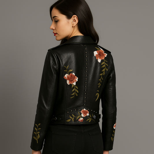 Amelia Embroidered Leather Look Jacket