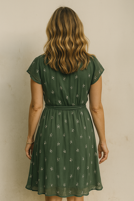 Elowen Faye White Dress – Cap Sleeves, High Neck, Cinched Waist